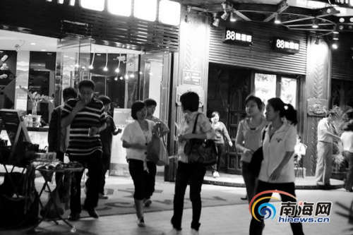 ????當(dāng)晚11時(shí)30分,三亞酒吧一條街內(nèi),各家KTV及酒吧門口人群絡(luò)繹不絕,其中有不少大學(xué)生的身影?!爸苣┯泻芏啻髮W(xué)生喜歡來這里玩?!痹谀尘瓢砷T口擺攤近半年的李小姐告訴記者,三亞高校的大學(xué)生經(jīng)常周末到酒吧玩,經(jīng)常會聽到他們討論學(xué)校的事情。