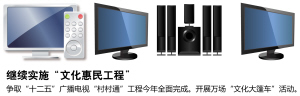 ????爭取“十二五”廣播電視“村村通”工程今年全面完成。推進文化信息資源共享、農家書屋、農村電影放映工程建設,開展萬場“文化大篷車”活動。
