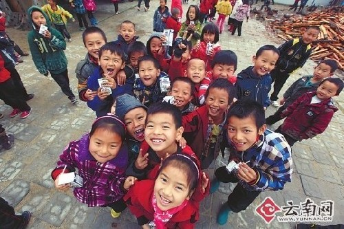 ????3月1日,是農(nóng)村義務(wù)教育學(xué)生營養(yǎng)改善計劃實施學(xué)校開餐的日子。上午9時許,孩子們在帳篷里念著書,他們身后,老師和班干部們正從彩鋼瓦小屋里向外搬牛奶和蛋糕。當(dāng)下課鈴響起,一份特殊的驚喜就將呈現(xiàn)在孩子們的面前。