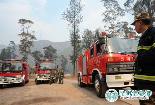 “北線火場(chǎng)大火已基本撲滅,600名軍警正依托隔離帶清剿余火?!弊蛱煜挛?,昆明公安消防支隊(duì)副支隊(duì)長楊新發(fā)一邊調(diào)度消防車上前撲火一邊向記者介紹火情。此時(shí),經(jīng)過54個(gè)小時(shí)的連夜奮戰(zhàn),安寧王家灘北線火場(chǎng)明火已經(jīng)基本撲滅,還有一些零星的明火,正由昆明公安消防支隊(duì)及駐昆部隊(duì)組成的600人撲火隊(duì)進(jìn)行圍剿。