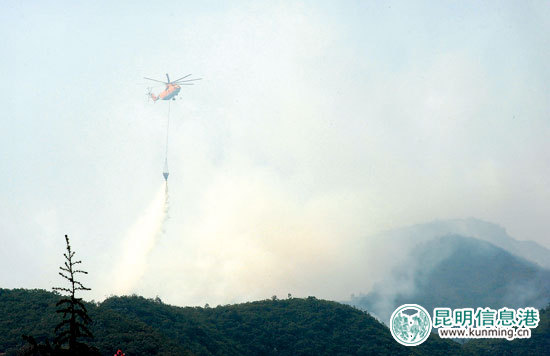 自3月19日開始,國家林業(yè)局西南航空護(hù)林總站就調(diào)集了M-26直升機(jī)到昆明市全天作業(yè),配合地面人員共同撲火。昆明市森林防火指揮部也及時(shí)調(diào)集了市級(jí)儲(chǔ)備物資——滅火彈3000發(fā)、二號(hào)工具500把、運(yùn)水水桶500只,增援火場(chǎng)。