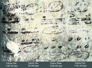 ?遺址墻上的四組數(shù)字,分別代表1195740天、341640天、2448420天、1765140天。