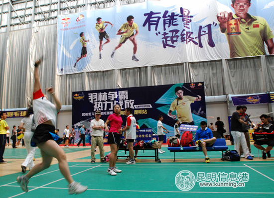 ????昆明信息港訊 記者戴興 今天上午,“羽林爭霸”2012紅牛城市羽毛球賽云南賽區(qū)昆明站的比賽在國際會(huì)展中心威克多羽毛球館正式開拍,本次比賽共吸引了54個(gè)業(yè)余隊(duì)近400位羽毛球愛好者的積極參與。進(jìn)過一整天的角逐,最終16支球隊(duì)晉級第二階段的比賽。