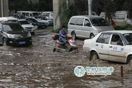 ????昆明市水務(wù)局有關(guān)負(fù)責(zé)人說,淹積水的原因主要是:立交橋下層雙向道路地勢(shì)低洼;周邊匯積水面積較大,形成徑流匯集到下層道路后,排水管道管徑小,排泄量嚴(yán)重不足。立交橋區(qū)域附屬設(shè)施、排水管網(wǎng)設(shè)計(jì)有缺陷,進(jìn)、出水管網(wǎng)不完善、管護(hù)不到位,淤積阻塞嚴(yán)重,導(dǎo)致無法排水。立交橋未綠化前,西邊山體裸露部分因雨水沖刷下大量泥沙,致使東北沙河水庫溢洪道、東干渠阻塞,來水排泄不暢,雨洪水溢到立交橋下層路面,造成嚴(yán)重的淹積水。