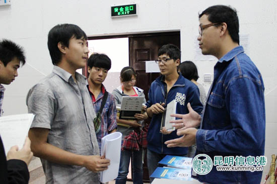 云南省就業(yè)局就業(yè)指導科、創(chuàng)業(yè)導師孔繁榮現(xiàn)場回答學生提問。