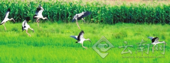 ????王英說,鉗嘴鸛棲息地一般在東南亞,因此國內(nèi)很少見到,那么這次大批鉗嘴鸛會到宣威呢?“不能肯定地說鉗嘴鸛來這里,是因為我們的環(huán)境變好了,很有可能是鉗嘴鸛過去的棲息地環(huán)境惡化了,于是鉗嘴鸛來到了這里,起碼在這里有適宜的氣候,也有充足的食物,水質(zhì)也可以,所以就棲息在這里?!保ㄟB惠玲 蔣瓊波)
