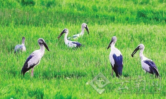 在大理、臨滄也有鉗嘴鸛發(fā)現(xiàn)記錄。 記者龍宇丹/攝