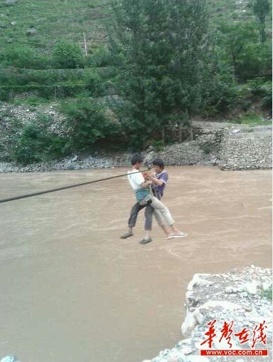 ????華聲在線7月24日訊(記者 蔣小康 實(shí)習(xí)生 綦雅倩)“我們的要求不高,讓學(xué)生有一條上學(xué)的安全道路?!苯?,有網(wǎng)友在天涯、華聲論壇等網(wǎng)絡(luò)社區(qū)發(fā)帖,稱甘肅隴南市文縣舍書(shū)鄉(xiāng)石川壩社一座便民大橋,自2010年舟曲特大泥石流垮塌后,當(dāng)?shù)卣兄Z新建的橋梁至今杳無(wú)音信。該社近二十多名學(xué)生上學(xué)無(wú)路可走,學(xué)生只能靠索道上學(xué)。