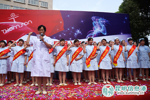 醫(yī)院職工在院長帶領(lǐng)下莊嚴(yán)宣誓。記者納婭/攝
