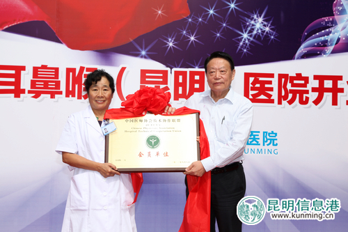 ????昆明信息港訊 記者納婭 29日上午,云南首個耳鼻喉專科醫(yī)院——康生耳鼻喉(昆明)醫(yī)院隆重開業(yè),中國健康教育協(xié)會會長、中國醫(yī)師協(xié)會會長、中國醫(yī)師協(xié)會技術(shù)協(xié)作聯(lián)盟主席殷大奎出席了開業(yè)儀式并致辭,他表示,鑒于康生耳鼻喉(昆明)醫(yī)院的規(guī)模和實力,中國醫(yī)師協(xié)會技術(shù)協(xié)作聯(lián)盟吸納其成為會員單位。開業(yè)慶典上,殷大奎主席進(jìn)行了現(xiàn)場授牌。