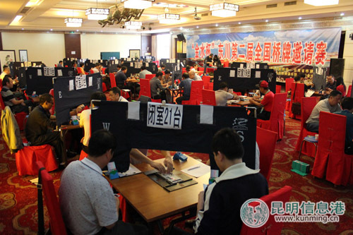 ????昆明信息港訊 9月25日,北京、廣東、四川等全國各地的300余名橋牌高手組成53個隊云集東川,開始了為期四天的“金水杯”東川第二屆全國橋牌邀請賽。