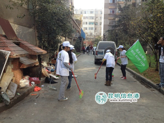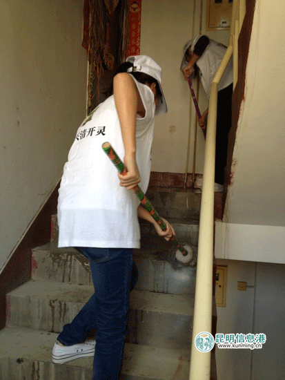 ????白云山明興“愛在云南,創(chuàng)衛(wèi)昆明”公益活動第四站于11月17日進(jìn)入春暉小區(qū)。60余名志愿者對社區(qū)的過道、綠化帶、墻面進(jìn)行了清理,并著重打掃了小區(qū)的樓道。春暉小區(qū)對此次活動非常的支持,還安排了幾名工作人員加入到志愿者的隊伍中。 此次活動值得一提的是,在志愿者們喊著口號繞了小區(qū)一圈以后,一個在小區(qū)廣場玩著滑板的小男孩跑過來和我們說想要加入志愿者的隊伍,這個小男孩叫張俊宇。在他的影響下,其他幾個小伙伴也一起參與了進(jìn)來。