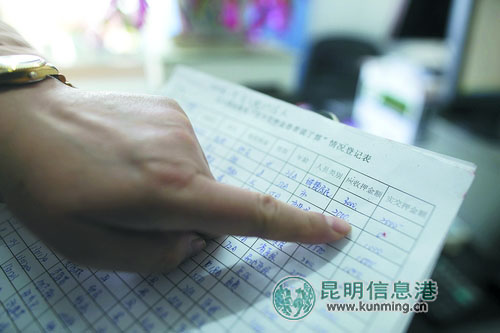 在省中醫(yī)院財務(wù)科的“患者說了算”情況登記表上能查到患者所欠的費用。記者馬閃山/攝