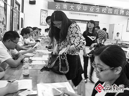 ????胡劍鋒也坦言,各高校都有這樣的情況出現(xiàn),云大也不例外,據(jù)他的觀察,現(xiàn)在到學校招聘的中小企業(yè)的數(shù)量增加較大,一些學生認識不到位,期望偏高,當他們被小企業(yè)錄用了,望到了另一座“山頭”更高,又去應聘這家單位,而拒絕了之前的那家簽了協(xié)議的單位。