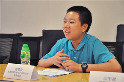 ????13歲的閻霄漢是北京八中少兒班學(xué)生,今年被保送到北京大學(xué)數(shù)學(xué)科學(xué)院。作為北京唯一一個中學(xué)生代表,今年5月12日至17日赴美參加了博通MASTERS國際中學(xué)生科技項目。昨日記者了解到,今年北京八中少兒班一共24名學(xué)生參加高考,其中5名學(xué)生被北大錄取,2名學(xué)生被清華錄取。