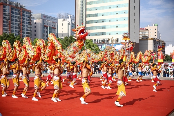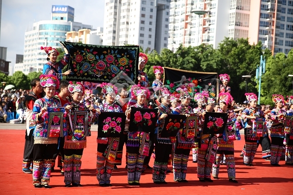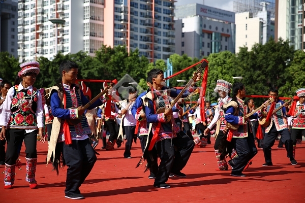 ????此次巡演,由來自祿豐縣的彝族龍舞方隊拉開序幕,此后,來自楚雄市的畢摩、大號、羊皮鼓方隊,姚安縣的梅葛方隊,雙柏縣的三笙方隊等為現(xiàn)場觀眾展現(xiàn)悠久的彝族歷史,永仁縣賽裝方隊,大姚縣紅馬纓方隊、南華縣蘆笙方隊,元謀縣花燈歌舞方隊等為大家演繹了彝族豐富多彩的生活,楚雄市大三弦方隊,武定縣酒歌方隊,牟定縣的左腳舞方隊將市民廣場的氣氛推向高潮。