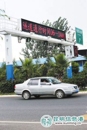 草海隧道入口處設(shè)有LED顯示屏,提醒過往車輛遂道開放時(shí)間。記者張玉杰\攝