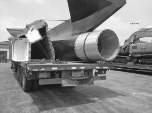 ????事實(shí)上,這車上的飛機(jī),只是模型,它是從四川成都運(yùn)往余姚一個(gè)愛國軍事基地作展覽的。但飛機(jī)模型,的確是按照網(wǎng)上的圖片,根據(jù)J-20隱形戰(zhàn)斗機(jī)1∶1的尺寸打造,并找了相近的顏色噴涂而成,“但它里面是空的,也就是個(gè)空殼子?!?/p>
