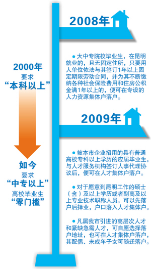 ????“為了鼓勵人才來昆工作,我市近年來一直降低落戶門檻?!眳堑辖榻B,當(dāng)前,昆明市引進(jìn)人才落戶服務(wù)已可以滿足多層次人才的落戶需求。尤其在落戶的學(xué)歷“門檻”上,已由2000年時的“本科以上”降低到“中專以上”,對高校畢業(yè)生來說,在政策層面可以說是零門檻。