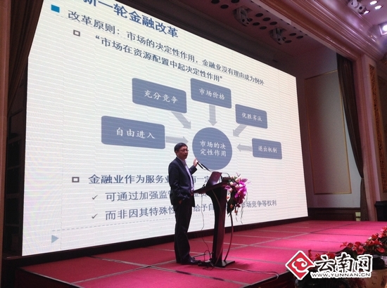 ????云南省政府金融辦陳云波副巡視員參與了研討并對云南建設(shè)沿邊金融改革實驗區(qū)的機遇和方向進行分析展望。云南城投集團董事長許雷、云南大學(xué)黨委書記劉紹懷、紅塔證券副總經(jīng)理李素明、云南世博旅游控股集團董事長往沖等各領(lǐng)域代表人士也參與了研討,就金融改革對風(fēng)投、城市開發(fā)、證券、民間金融及多個產(chǎn)業(yè)的影響及其內(nèi)在機遇進行了互動分析。