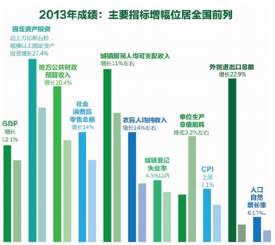 ????2014年,云南經(jīng)濟社會的發(fā)展目標,政府工作報告建議為:GDP增長11%以上,規(guī)模以上固定資產(chǎn)投資增長24%以上,地方公共財政預(yù)算收入增長12%,社會消費品零售總額增長13%,城鎮(zhèn)居民人均可支配收入增長11%,農(nóng)民人均純收入增長12%,CPI漲幅控制在3.5%左右,城鎮(zhèn)登記失業(yè)率控制在4.3%以內(nèi),人口自然增長率控制在6%。以內(nèi),單位生產(chǎn)總值能耗下降3.2%以上,外貿(mào)進出口總額增長13%。
