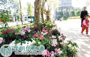昆明市2012年開(kāi)始實(shí)施城市主要道路綜合整治工作,許多街道種上了鮮花,除比利時(shí)杜鵑、萬(wàn)壽菊外,還有梅花、矮牽牛、孔雀草、櫻花、茶花等,隨著花季的到來(lái),櫻花大道、茶花大道、梅花大道等鮮花大道一一呈現(xiàn)在市民眼前。