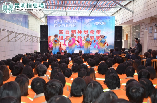 ????3月28日,昆明市看守所迎來了一批特殊的客人,她們是曾獲得全國以及省市表彰的3名女勞模和昆明市女知聯(lián)的文藝小分隊演員。在昆明市婦聯(lián)領(lǐng)導(dǎo)的帶領(lǐng)下,踏著春天的步伐,她們走進(jìn)公安監(jiān)管場所。于是,一場別開生面的報告、一臺非同凡響的演出、一次敞開心扉的座談,拉開了昆明市婦聯(lián)與看守所維權(quán)周暨社會開放日的畫卷。