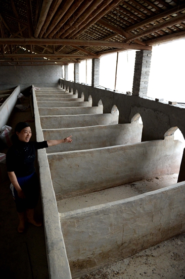 ??? 一養(yǎng)殖戶(hù)站在空空的母豬欄前。去年底,她還擁有能繁母豬65頭,如今存欄已不到20頭。新華社