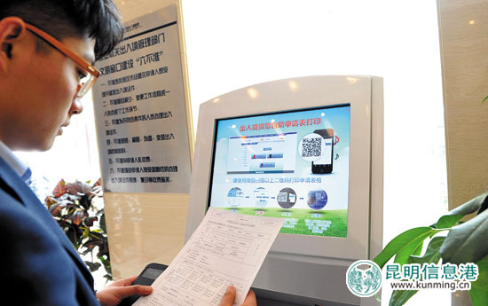 ????近日,昆明全國首推辦出境證件網(wǎng)上填表微信打?。合壬暇W(wǎng)填寫表格,再帶上手機(jī)到昆明市公安局出入境管理局大廳的打印機(jī)上掃一掃二維碼,表格就可立即打印出來。