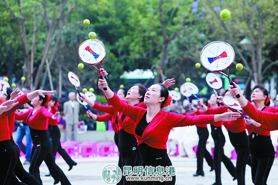 太極柔力球表演。記者張玉杰/攝