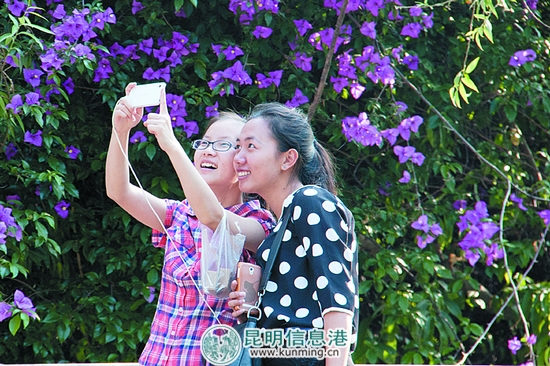 “買買,這棵葉子花樹怎么這么大!”下午2點(diǎn),在大觀公園擁擠的人流中,謝阿姨招呼著家人拍照留念。今年,大觀公園花展首日吸引了2.5萬游客前來游玩。