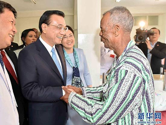 ????5月6日,中國國務(wù)院總理李克強(qiáng)與埃塞俄比亞總統(tǒng)穆拉圖一同來到亞的斯亞貝巴阿勒塔醫(yī)院,看望受益于中國免費(fèi)白內(nèi)障手術(shù)“光明行”活動(dòng)的埃塞俄比亞患者。記者李濤/攝