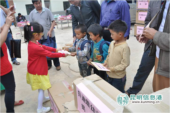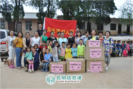 ????昆明信息港訊 記者廖拓溪 6月5日,貝迪雅幼兒園的家長代表、幼兒代表們帶著愛心與捐贈物資來到了海拔2600多米的尋甸縣朵馬嘎村的朵馬嘎小學,來自昆明的孩子們和朵馬嘎小學的孩子們成為了好朋友,并通過這次特殊的“旅行”為山區(qū)的孩子送去了幫助和快樂。