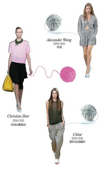 無論在秀場超模身上,還是在明星和街拍達(dá)人身上這種搭配法則被演繹得游刃有余。套頭衫、針織衫,隨意卷起的袖口,寬寬松松的廓型,最能演繹出自然松散的效果。鮮明色彩、特別材質(zhì)的毛衣也更能凸顯身體曲線的美感和復(fù)古摩登的風(fēng)韻,這樣的搭配法則在今夏絕不過時。不論是扣子只扣一個的Alexander Wang灰色羊絨針織連體衫,還是Dior優(yōu)雅的短袖羊絨桑蠶絲短T和看著像毛衣其實是塑料絲線編織的Chloé無袖背心,或者是Burberry Prorsum的美利奴羊毛針織切斯特大衣,這些看似很厚其實又舒服又透氣的毛物都同樣是夏日OL和潮人們的必備囊中之物。
