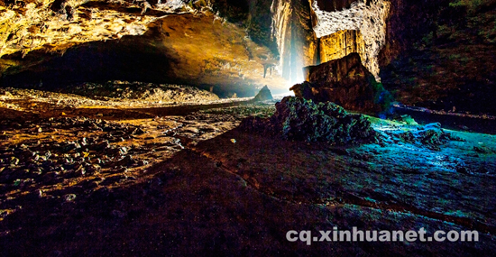 ??? 金佛山區(qū)內(nèi)天然溶洞星羅棋布,以位于機(jī)身睡佛肚臍上的古佛洞最為著名,雄大幽深,洞中有山、有河、有壩,洞中有洞,層層交錯(cuò)。