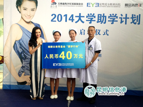 昆明信息港訊 6月28日,云南省青基會與昆明愛爾眼科醫(yī)院聯(lián)合,首期注資40萬元發(fā)起“2014大學助學計劃”的公益助學活動。此次活動在昆明愛爾眼科醫(yī)院啟動,計劃對全云南省100名家庭經(jīng)濟困難大學新生開展援助行動,幫助更多學子完成上大學的心愿。當紅影星莫小棋作為此次公益活動大使,當天也親臨現(xiàn)場助陣。