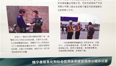 睢寧縣征信辦的展板上,宣傳類似貼小廣告,交通違法等行為將被扣信用分。