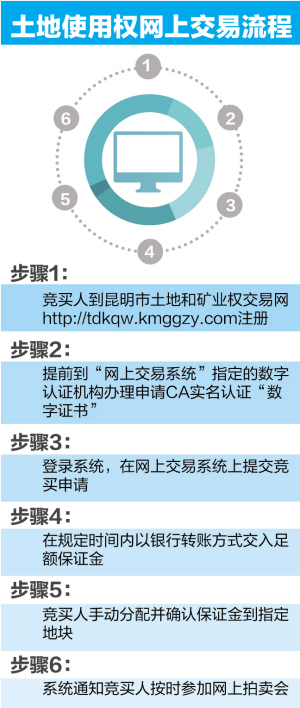為此,我市將在主城區(qū)范圍內(nèi)先行啟動(dòng)國(guó)有建設(shè)用地使用權(quán)網(wǎng)上公開在線交易,取得經(jīng)驗(yàn)后逐步擴(kuò)大到縣、區(qū),力爭(zhēng)到2018年全市全部實(shí)行網(wǎng)上交易。目前,市國(guó)土局開發(fā)建設(shè)昆明市土地和礦業(yè)權(quán)交易系統(tǒng)(以下簡(jiǎn)稱:系統(tǒng)),并形成了國(guó)有建設(shè)用地使用權(quán)的網(wǎng)上招拍掛交易規(guī)范。