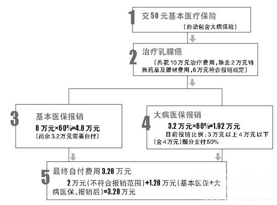 ????去年試點的大病醫(yī)保改革個人報銷部分達(dá)到50%,而實施大病保險新政策后,個人自付超出5000元至1萬元后,將獲得50%到90%的報銷比例。