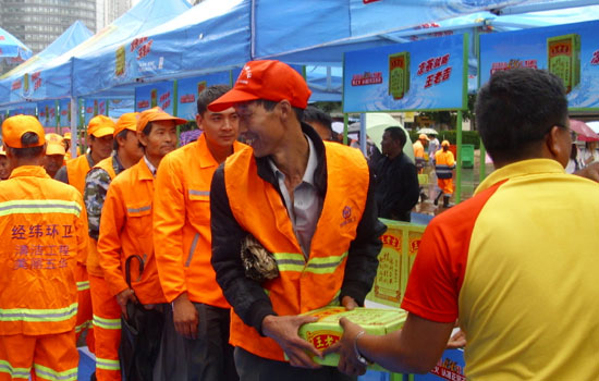 ????近日,由昆明市城市管理綜合行政執(zhí)法局主辦,五華區(qū)環(huán)境衛(wèi)生管理處協(xié)辦,廣州王老吉藥業(yè)股份有限公司(下稱:王老吉藥業(yè))承辦的“關(guān)愛(ài)環(huán)衛(wèi)工人,涼茶送吉爽”的公益行動(dòng)來(lái)到昆明南屏步行街,為當(dāng)?shù)氐沫h(huán)衛(wèi)工人送上王老吉涼茶,在這個(gè)炎熱的夏天為他們帶去絲絲清涼。從王老吉志愿者手中接過(guò)王老吉涼茶,現(xiàn)場(chǎng)的環(huán)衛(wèi)工人們紛紛露出了笑臉?!巴趵霞】涤纸馐?,我們都愛(ài)喝!”其中一位環(huán)衛(wèi)工阿姨接受采訪時(shí)高興的說(shuō)。