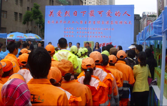 ????有一群人,他們不管刮風(fēng)下雨,烈日酷暑,總是穿梭在大街小巷,他們被稱為“城市美容師”,他們就是我們身邊最平凡卻又最可愛(ài)的人——環(huán)衛(wèi)工人。