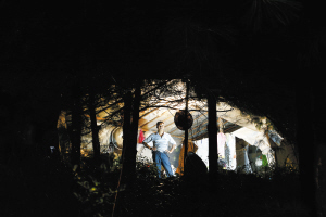 ????晚飯過后,送走客人,李有紅又下山了一趟,把家里的土狗小白帶到山上。小白是家里最后上山守山的家庭成員,也是李有紅守山最得力的助手。小白是一只兩歲的白色土狗,這是它第二年守山。李有紅說:“一整個(gè)山頭,小白都能自己巡完,只要見到陌生人,它就會(huì)驅(qū)趕,吼叫?!?/p>