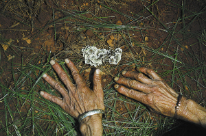 ????李美英清楚地記得林子里所有“菌窩”的位置,分毫不差。冒著雨水匆匆上山,李美英照著自己的記憶地圖,仔細(xì)搜索著老“菌窩”的位置。不過,讓她失望的是,在林子里逛了兩個(gè)多小時(shí),只看到幾朵灰白色的有毒小雜菌?!霸俚鹊瓤?,明天早上估計(jì)能找到幾朵牛肝菌?!彼凉M懷信心地說。