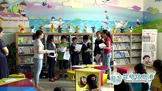 ????昆明信息港訊 通訊員鄔艷芳 蘇文忠 暑假期間,官渡區(qū)圖書(shū)館為小讀者們開(kāi)展了一系列少兒趣味閱讀活動(dòng)。7月30日,一場(chǎng)“聲音的魅力,親近廣播”活動(dòng)在官渡區(qū)圖書(shū)館展開(kāi),正在享受假區(qū)的小讀者們走進(jìn)官渡區(qū)圖書(shū)館,和云南廣播電視臺(tái)少兒頻率的老師們玩了一次有趣的閱讀,一起體驗(yàn)聲音的魅力,感受廣播劇的樂(lè)趣。