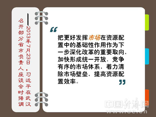 ??? 要把更好發(fā)揮市場(chǎng)在資源配置中的基礎(chǔ)性作用作為下一步深化改革的重要取向,加快形成統(tǒng)一開(kāi)放、競(jìng)爭(zhēng)有序的市場(chǎng)體系,著力清除市場(chǎng)壁壘,提高資源配置效率。