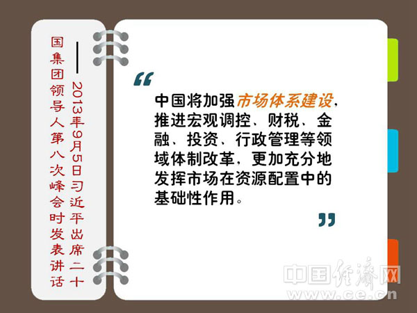 ??? 中國(guó)將加強(qiáng)市場(chǎng)體系建設(shè),推進(jìn)宏觀調(diào)控、財(cái)稅、金融、投資、行政管理等領(lǐng)域體制改革,更加充分地發(fā)揮市場(chǎng)在資源配置中的基礎(chǔ)性作用。