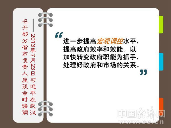 ??? 進(jìn)一步提高宏觀調(diào)控水平,提高政府效率和效能。以加快轉(zhuǎn)變政府職能為抓手,處理好政府和市場(chǎng)的關(guān)系。