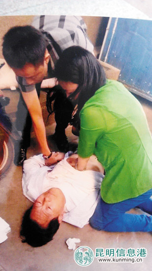 ????5月16日早上,一個老人突然昏迷倒在五一路公安廳家屬院西院大門口,一時間沒有了呼吸和脈搏?!拔沂亲o(hù)士,快讓我看看?!本o急關(guān)頭,人群中走出一個身穿綠衣的女子,對老人進(jìn)行了心臟按壓和口對口的人工呼吸。經(jīng)過女子搶救后,老人恢復(fù)了心跳,隨后被120送往醫(yī)院。