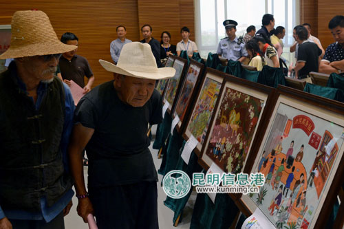 ????呈貢區(qū)人才辦工作人員介紹,通過這種方式,讓農民畫家們用生動、直觀的方式來表現新區(qū)發(fā)展和建設的景象。從這些畫作與市民的反應來看,這些農民畫家對群眾路線的理解非常深刻和到位。