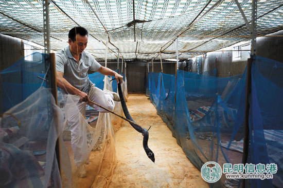 在很多人看來(lái),蛇類(lèi)是一種令人生畏的冷血爬蟲(chóng)。殊不知,蛇類(lèi)全身都是寶,昆明的一些商家看準(zhǔn)了商機(jī),紛紛投入養(yǎng)蛇者的行列。然而,養(yǎng)蛇并非易事,其嚴(yán)格的審批流程及飼養(yǎng)技術(shù)讓不少人望而卻步。目前,昆明市林業(yè)局發(fā)證許可的蛇類(lèi)人工養(yǎng)殖和經(jīng)營(yíng)利用單位僅有兩家。